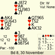| 3 NT | W | +2 | -660 | 3 | 03 - 03 | 1 | 3 |