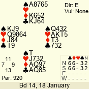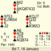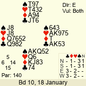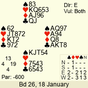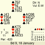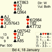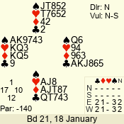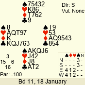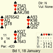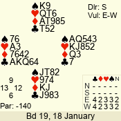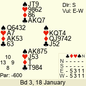 | 3 NT | S | +1 | 430 | 5 | 02 - 04 | 3 | 2 |