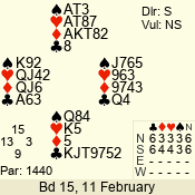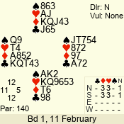 | 3 NT | S | +1 | 430 | J | 01 - 03 | 5 | 1 |