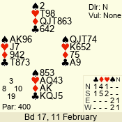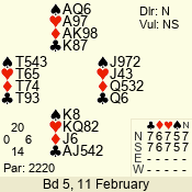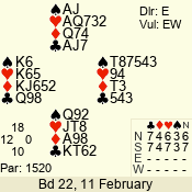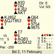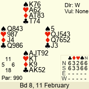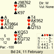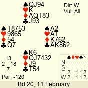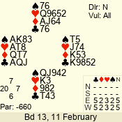 | 3 NT | W | +2 | -660 | K | 02 - 02 | 1 | 2 |