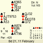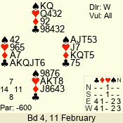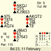 | 3 NT | S | +1 | 430 | 8 | 04 - 06 | 5 | 4 |