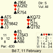 | 3 NT | W | +1 | -630 | 5 | 03 - 02 | 2 | 3 |