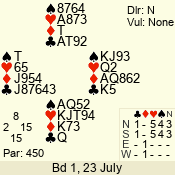 Con | Dc | Res | Score | Ld | Pairs | Rd | Tbl | 4  | N | +1 | 450 | K | 02 - 03 | 5 | 2 |