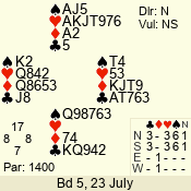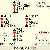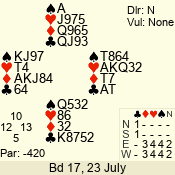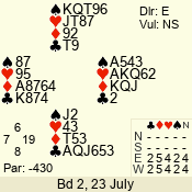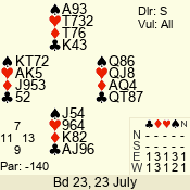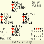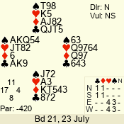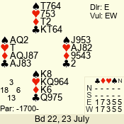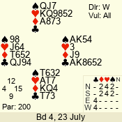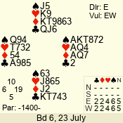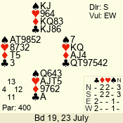 Con | Dc | Res | Score | Ld | Pairs | Rd | Tbl | 4  | E | -4 | 400 | A | 01 - 05 | 2 | 1 |