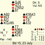 Con | Dc | Res | Score | Ld | Pairs | Rd | Tbl | 1 NT | E | -1 | 50 | 5 | 01 - 03 | 4 | 1 |