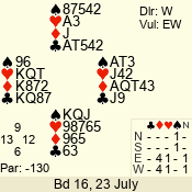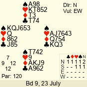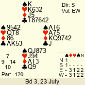Con | Dc | Res | Score | Ld | Pairs | Rd | Tbl | 3 NT | E | -3 | 150 | 5 | 01 - 03 | 4 | 1 |