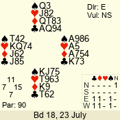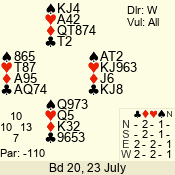 Con | Dc | Res | Score | Ld | Pairs | Rd | Tbl | 2 NT | E | -1 | 100 | 6 | 03 - 01 | 3 | 3 |