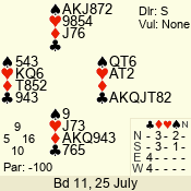 | 3 NT | S | +1 | 430 | 4 | 08 - 06 | 3 | 8 |