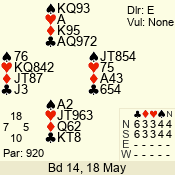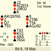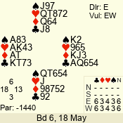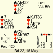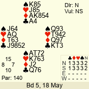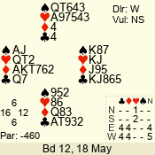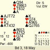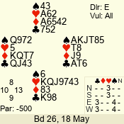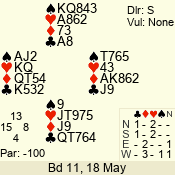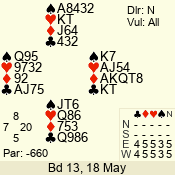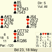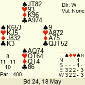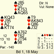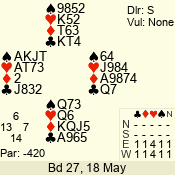 | 3 NT | S | +1 | 430 | A | 05 - 01 | 5 | 5 |