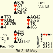 | 3 NT | E | +2 | -660 | 8 | 05 - 08 | 7 | 5 |