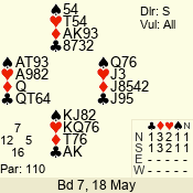 | Con | Dc | Res | Score | Ld | Pairs | Rd | Tbl | | 7 NT | E | -2 | 200 | 5 | 07 - 03 | 5 | 7 |