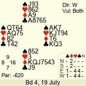 | 3 NT | S | +1 | 430 | 7 | 04 - 03 | 2 | 4 |