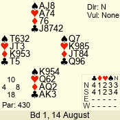 | 3 NT | S | +1 | 430 | 5 | 01 - 01 | 1 | 1 |