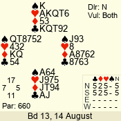 | 3 NT | W | +2 | -660 | 5 | 08 - 03 | 12 | 8 |