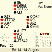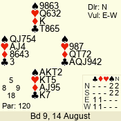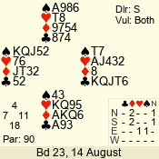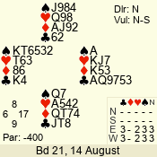 | 3 NT | S | +1 | 430 | 3 | 09 - 08 | 2 | 9 |
