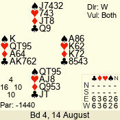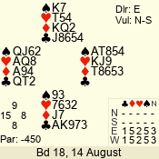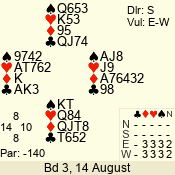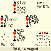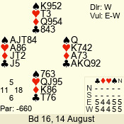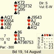 | 3 NT | W | +1 | -430 | 6 | 08 - 08 | 1 | 8 |