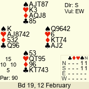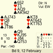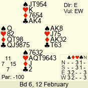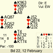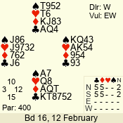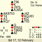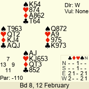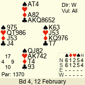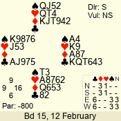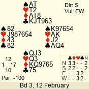 | 3 NT | W | +3 | -490 | J | 01 - 03 | 5 | 1 |