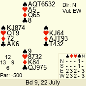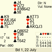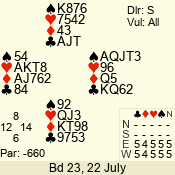 | 3 NT | W | +1 | -430 | 2 | 04 - 01 | 4 | 4 |