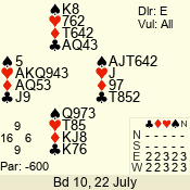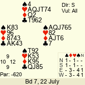 | 3 NT | S | +1 | 630 | 7 | 02 - 02 | 1 | 2 |