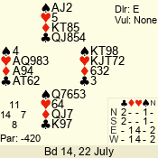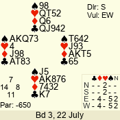 | 3 NT | E | +2 | -660 | 8 | 04 - 08 | 5 | 4 |