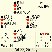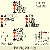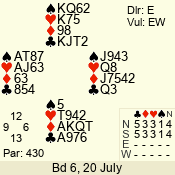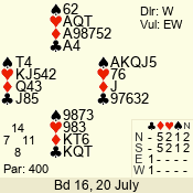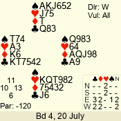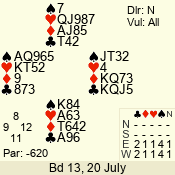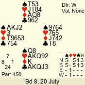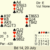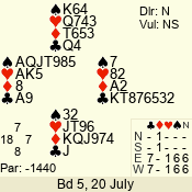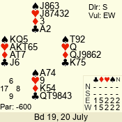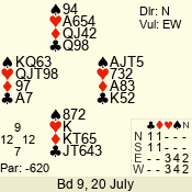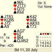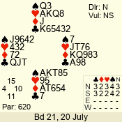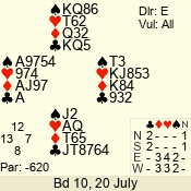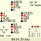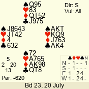 | 3 NT | W | +1 | -630 | 3 | 01 - 04 | 5 | 3 |