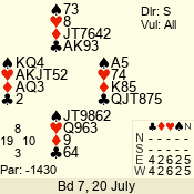| 3 NT | S | +1 | 630 | 4 | 10 - 03 | 1 | 4 |