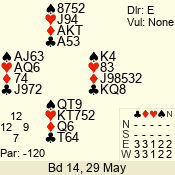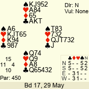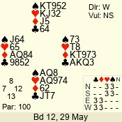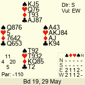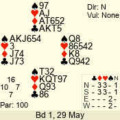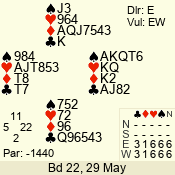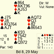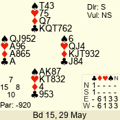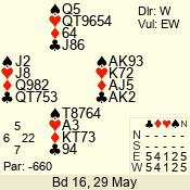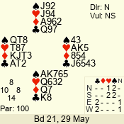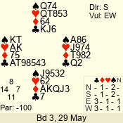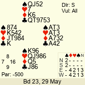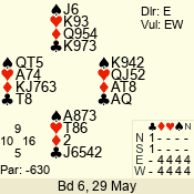 | 3 NT | W | +1 | -630 | 3 | 06 - 05 | 2 | 6 |