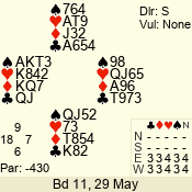 | 3 NT | S | +1 | 430 | K | 04 - 03 | 2 | 4 |