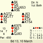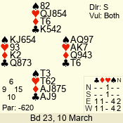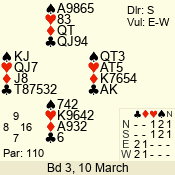 Con | Dc | Res | Score | Ld | Pairs | Rd | Tbl | 3 N | S | +3 | 490 | 2 | 01 - 20 | 22 | 1 |