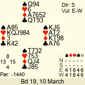 Con | Dc | Res | Score | Ld | Pairs | Rd | Tbl | 1  | W | +2 | -140 | Q | 01 - 19 | 23 | 1 |