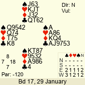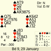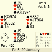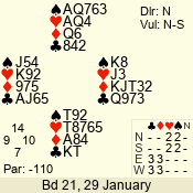 3 NT | S | +1 | 430 | J | 11 - 10 | 2 | 11 |
