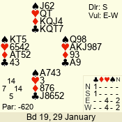 Con | Dc | Res | Score | Ld | Pairs | Rd | Tbl | 4 x | S | = | 590 | K | 06 - 09 | 10 | 6 |