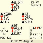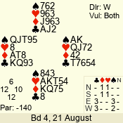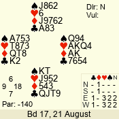 3 NT | W | +1 | -430 | 2 | 05 - 04 | 2 | 5 |