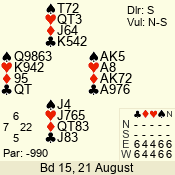 3 NT | S | +1 | 630 | 4 | 04 - 01 | 4 | 4 |