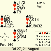 3 NT | S | +1 | 430 | 6 | 01 - 03 | 8 | 1 |