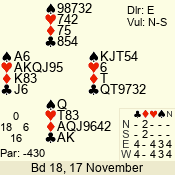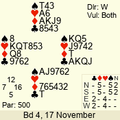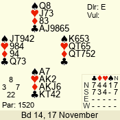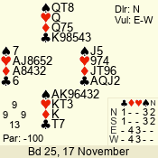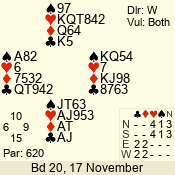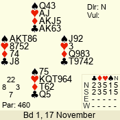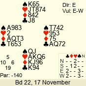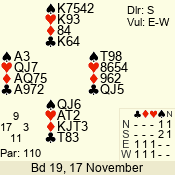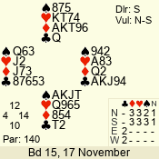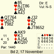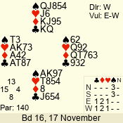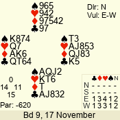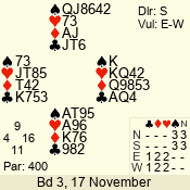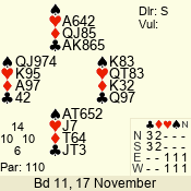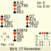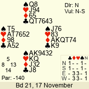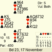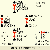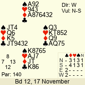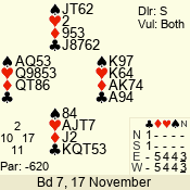 | 3 NT | S | +2 | 660 | 7 | 07 - 13 | 8 | 7 |