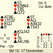 | 3 NT | E | -1 | 50 | 5 | 11 - 10 | 2 | 11 |
