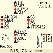 | 3 NT | W | -1 | 50 | J | 05 - 11 | 8 | 5 |
