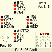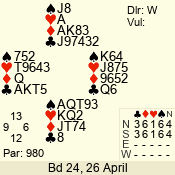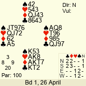 Con | Dc | Res | Score | Ld | Pairs | Rd | Tbl | 3 NT | N | +2 | 660 | 6 | 13 - 04 | 9 | 13 |