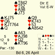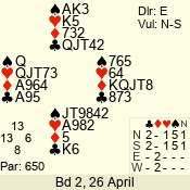 Con | Dc | Res | Score | Ld | Pairs | Rd | Tbl | 4  | S | +1 | 650 | Q | 02 - 10 | 12 | 2 |