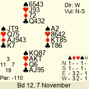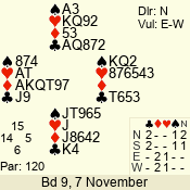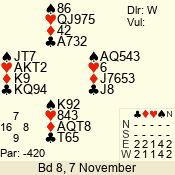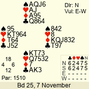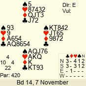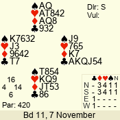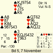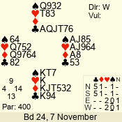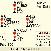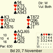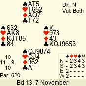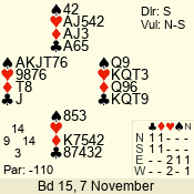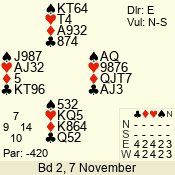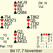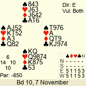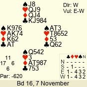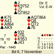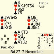 3 NT | E | +1 | -430 | 9 | 05 - 09 | 6 | 5 |