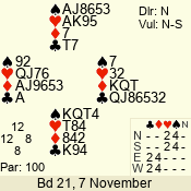 3 NT | E | +1 | -430 | 9 | 04 - 07 | 7 | 4 |
