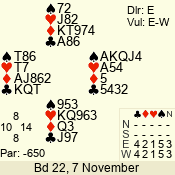 | 3 NT | E | +1 | -430 | 9 | 04 - 07 | 7 | 4 |