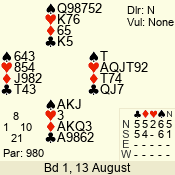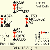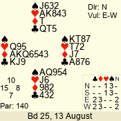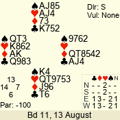 Con | Dc | Res | Score | Ld | Pairs | Rd | Tbl | 1 N | S | +2 | 150 | Q | 13 - 14 | 16 | 13 |