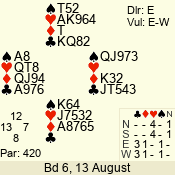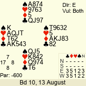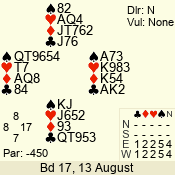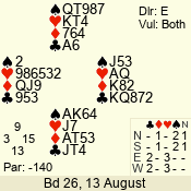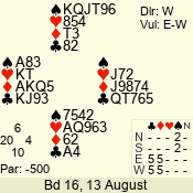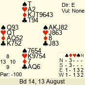 Con | Dc | Res | Score | Ld | Pairs | Rd | Tbl | 4 x | E | -2 | 500 | 2 | 14 - 13 | 18 | 14 |
