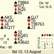 Con | Dc | Res | Score | Ld | Pairs | Rd | Tbl | 2  | E | = | -90 | 8 | 13 - 12 | 18 | 13 |