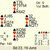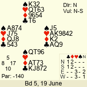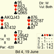 Con | Dc | Res | Score | Ld | Pairs | Rd | Tbl | 3 NT | N | = | 600 | 4 | 04 - 08 | 6 | 4 |