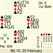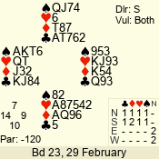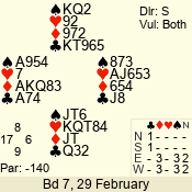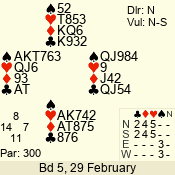 Con | Dc | Res | Score | Ld | Pairs | Rd | Tbl | 4  | E | -3 | 300 | 8 | 05 - 02 | 21 | 5 |