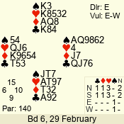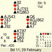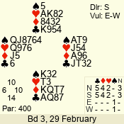 Con | Dc | Res | Score | Ld | Pairs | Rd | Tbl | 3  | E | -4 | 400 | A | 10 - 14 | 14 | 10 |