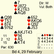 Con | Dc | Res | Score | Ld | Pairs | Rd | Tbl | 4  | N | +2 | 480 | Q | 17 - 12 | 6 | 17 |